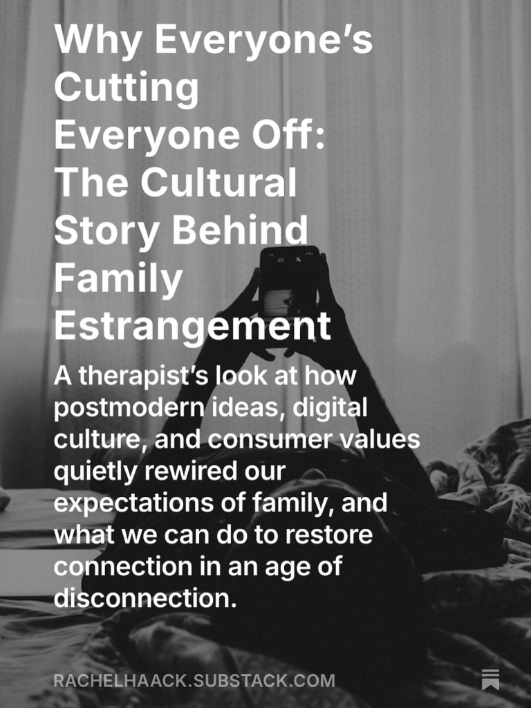 Books like Adult Children of Emotionally Immature Parents and online influencers preaching “go no contact” have popularized this moral framework of hierarchy and harm. Once you interpret ordinary imperfection through a lens of oppression, the only moral response becomes disconnection.